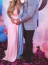 Beaumama robes photo longue grossese baby shower bloc de couleur fendu le côté couches femme enceinte