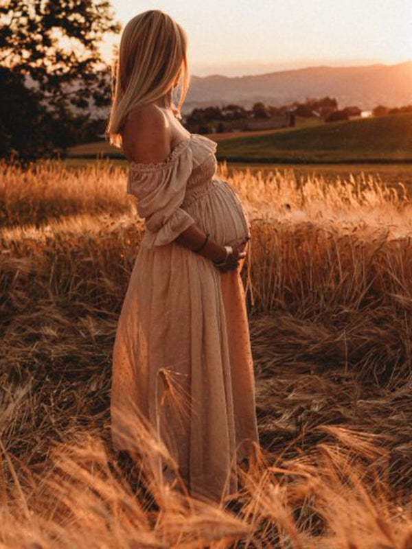 Beaumama robes photo longue grossesse baby shower volants coulisse taille fluide femme enceinte