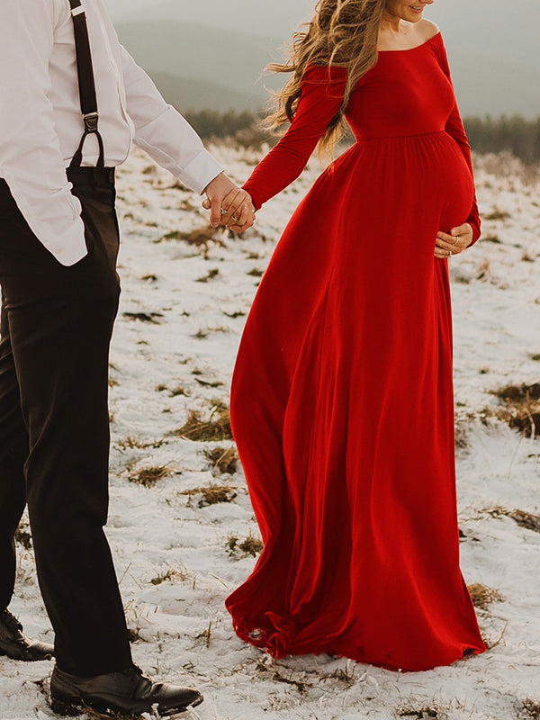 Beaumama robes photo longue grossesse élégant enceinte shooting fluide plissé col bateau femme enceinte